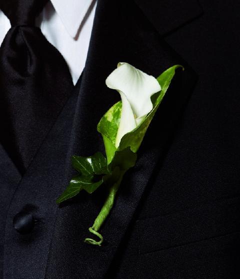 Boutonnière, couronne et bracelet.